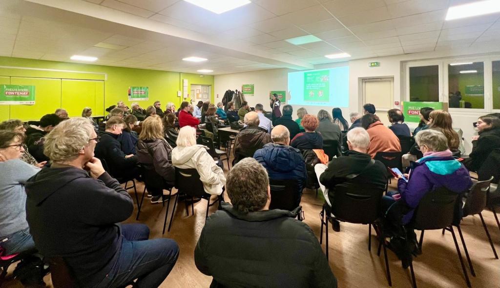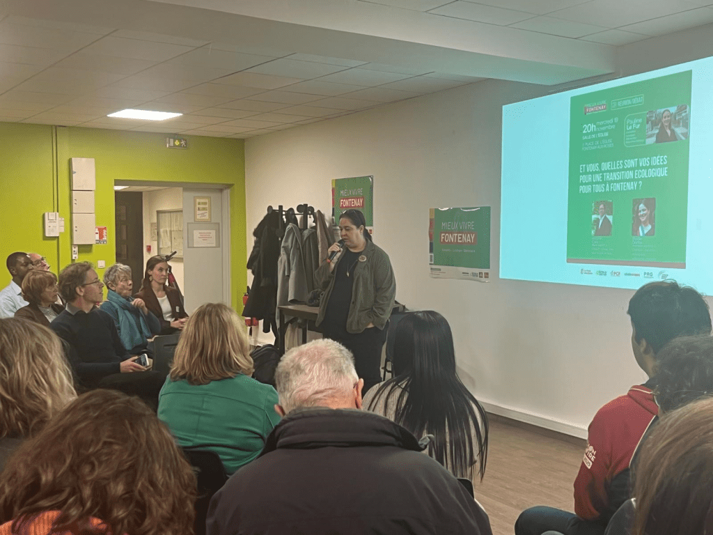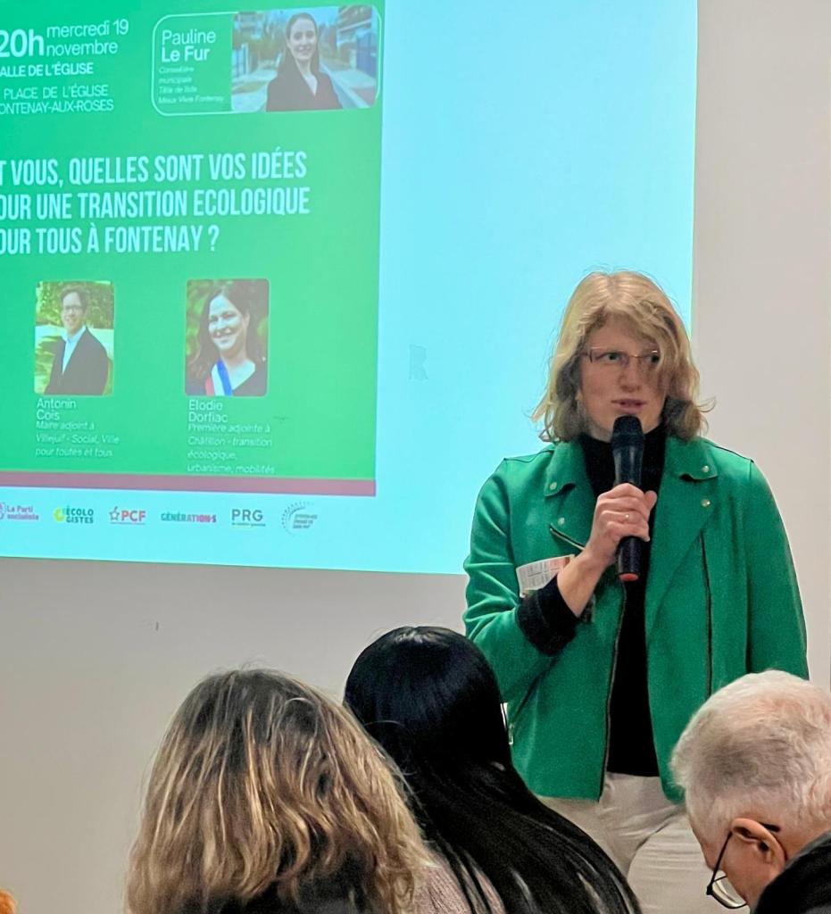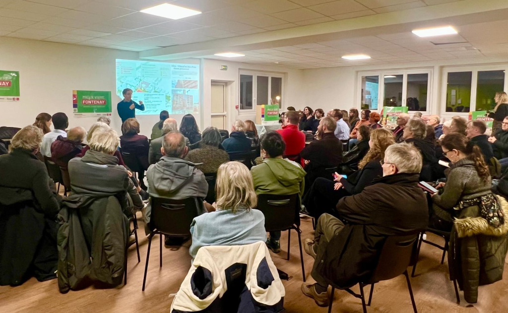 Mardi 19 novembre, la salle était pleine pour la réunion publique organisée par le collectif Mieux Vivre Fontenay, consacrée à la transition écologique. Deux élus locaux, Élodie Dorfiac (Châtillon) et Antonin Cois (Villejuif), sont venus partager leurs expériences inspirantes et les combats menés pour transformer durablement leurs communes. La soirée a également été rythmée par des temps d’échanges avec le public, par un moment artistique et humoristique et par la présentation de propositions pour faire de Fontenay une ville durable, résiliente et solidaire.